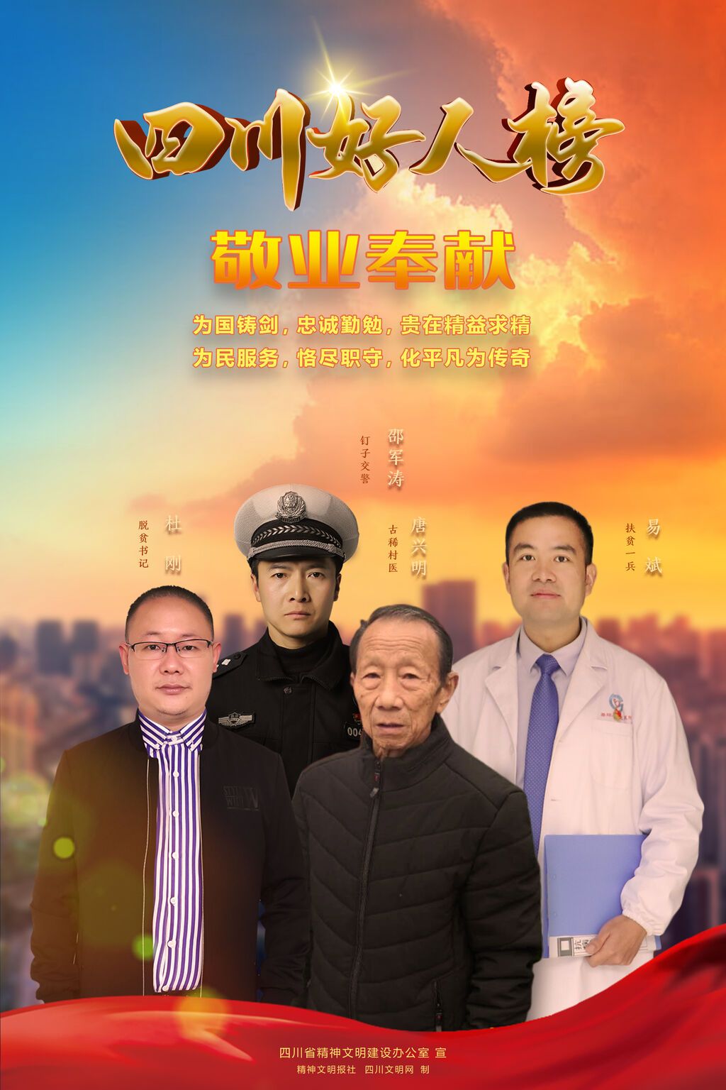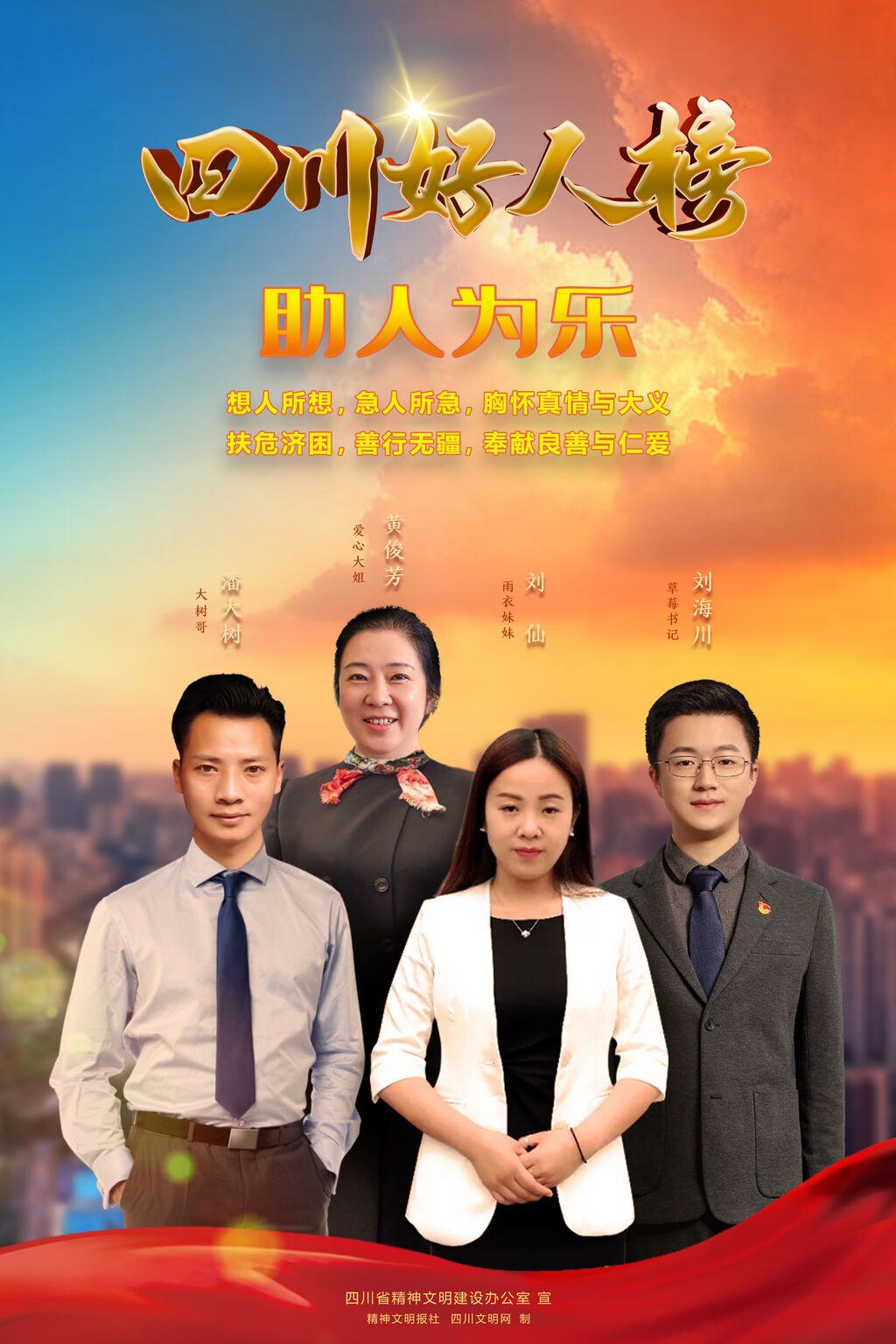 近日,四川省文明办在自贡市举行2020年首场“四川好人榜”发布仪式,50个先进典型荣登2020年第一批“四川好人榜”。为弘扬好人精神,提升活动影响力,四川将陆续推出“四川好人榜”系列公益广告。首批公益广告选取2020年第一批“四川好人榜”部分代表人物,于10月21日推出。
