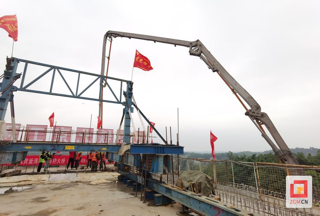 10月28日下午,在自贡市沿滩区王井镇太源井村川南城际铁路自宜段施工现场,随着最后一方混凝土的浇筑完成,由中铁北京工程局承建的川南城际铁路自宜段釜溪河双线特大桥连续梁比计划工期提前5天合拢,这是自宜铁路全线首个连续梁顺利合拢,也是四川省内首条350公里时速高速铁路首个现浇连续梁完成施工,标志着自宜铁路项目建设再次取得突破性进展。