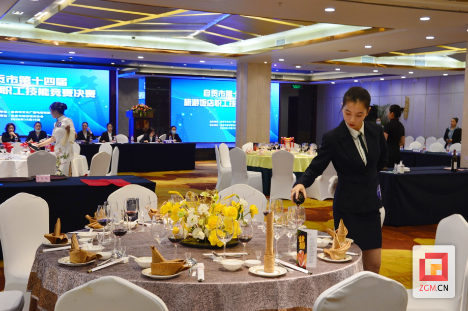 10月30日,自贡市第十四届旅游饭店职工技能竞赛决赛在汇东大酒店举行,来自20余家市旅游饭店协会成员单位的56名选手大秀才艺,分高星级酒店、商务酒店两个类别,进行了前厅服务、中式铺床、中餐宴会摆台、西餐宴会摆台四个组别的比赛。最终,汇东大酒店、英祥锦江大酒店、雄飞假日酒店、雄飞锦绣花园酒店、荣州大酒店、东环之兴酒店获团体优胜奖。
