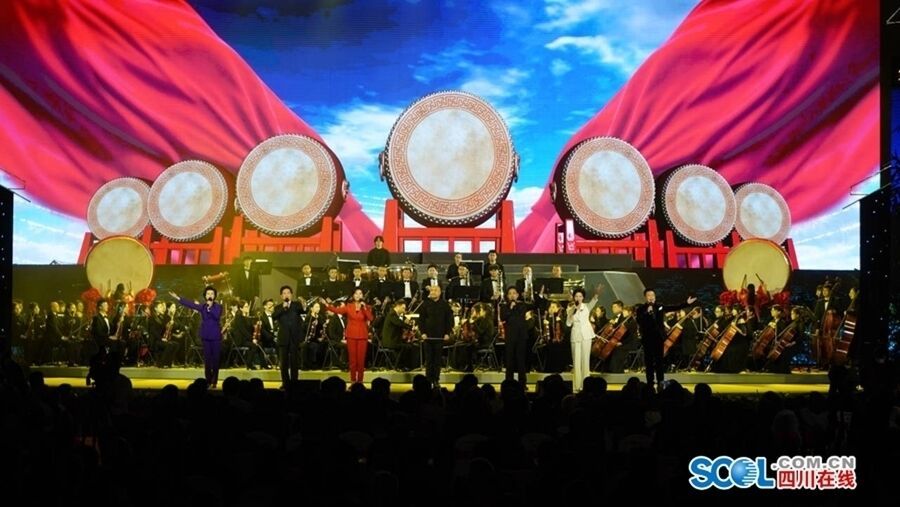 19时30分许,在催人奋进的阵阵鼓声中,开幕式正式开始。胡和平在致辞中表示,第六届中国诗歌节在四川省和重庆市两地一同举办,是落实党中央推动成渝地区双城经济圈建设决策部署的务实之举,也是以文化繁荣为经济社会高质量发展赋能助力的务实之举。刚刚闭幕的十九届五中全会把文化建设放在突出位置,明确“十四五”时期文化建设目标要求,提出到2035年建成文化强国的远景目标。广大文艺工作者要以习近平总书记关于文艺工作的重要论述精神为遵循,贯彻落实党中央关于文化工作的各项决策部署,坚持以人民为中心的创作导向,坚持与时代同步伐,发时代之先声、颂时代之精神,用心用情用功抒写伟大时代,推出更多讴歌党、讴歌祖国、讴歌人民、讴歌英雄的精品力作,推动社会主义文化繁荣兴盛,为实现中华民族伟大复兴中国梦凝聚文化力量。