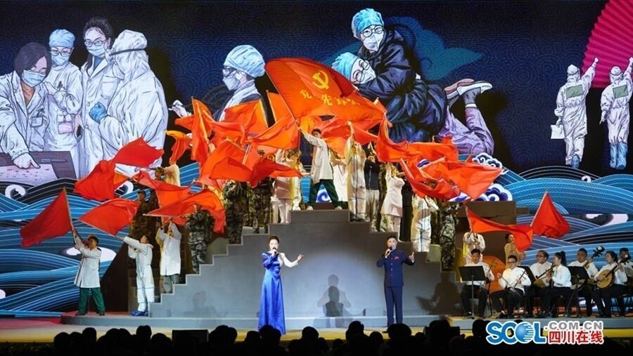 省领导甘霖、罗强,成都市领导王凤朝,2020年全国艺术创作工作会议代表、全国各省(区、市)作家协会嘉宾、诗人,我省优秀抗疫医务工作者和各界群众代表等参加开幕式。(四川在线记者 郭静雯 摄影 田为 向宇)