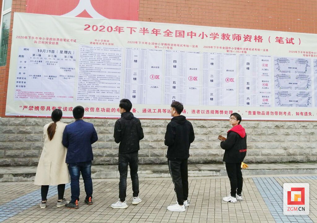 10月31日,2020年下半年中小学教师资格笔试考试举行。全市报考6951人,13700科次。其中,报考幼儿园类的1511人,小学类2175人,初中类1370人,高中类1697人,中职类198人。全市设四川轻化工大学汇南校区、自流井区塘坎上小学和光大街小学三个考点。