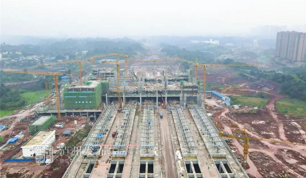 据了解,川南城际铁路五标段除了路基工程,剩余部分就是泸州高铁站的基础施工。截至目前,泸州高铁站基础工程已全面结束,站台施工施工基本完成,施工重点已转向站场附属工程,如四电线槽、站场围墙、路基填筑等。