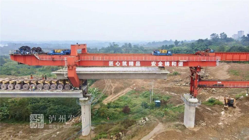 11月2日,川南城际铁路泸州段最后一榀双线箱梁完成架设。这标志着川南城际铁路泸州段主线路基工程全面结束。