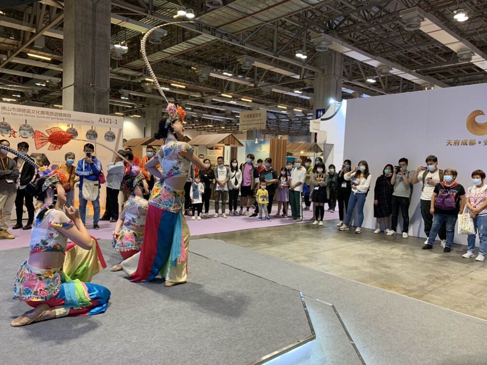 11月6日至8日,四川省歌舞剧院和江旗袍艺术团的艺术家们还在澳门旅博会四川馆展台现场,轮番表演了《节日的盛装》《俏花旦》《蜀韵旗袍秀》以及琵琶演奏、变脸、茶艺秀等节目,四川省的非遗传承人还现场制作了道明竹编、夹江年画等,让现场观众大呼过瘾,艺术家们的演出以魅力天府为背景,充分展现了四川独具魅力的巴蜀文化。四川馆也成为澳门旅博会全场接待观众最多的展馆。