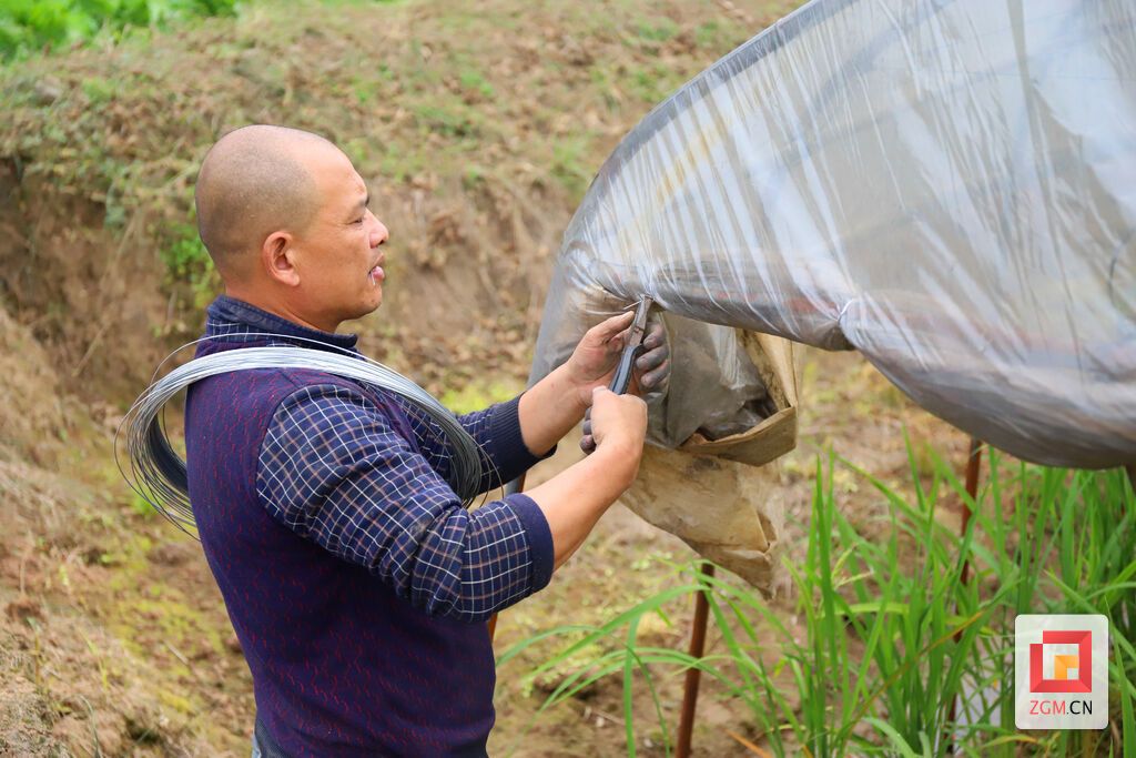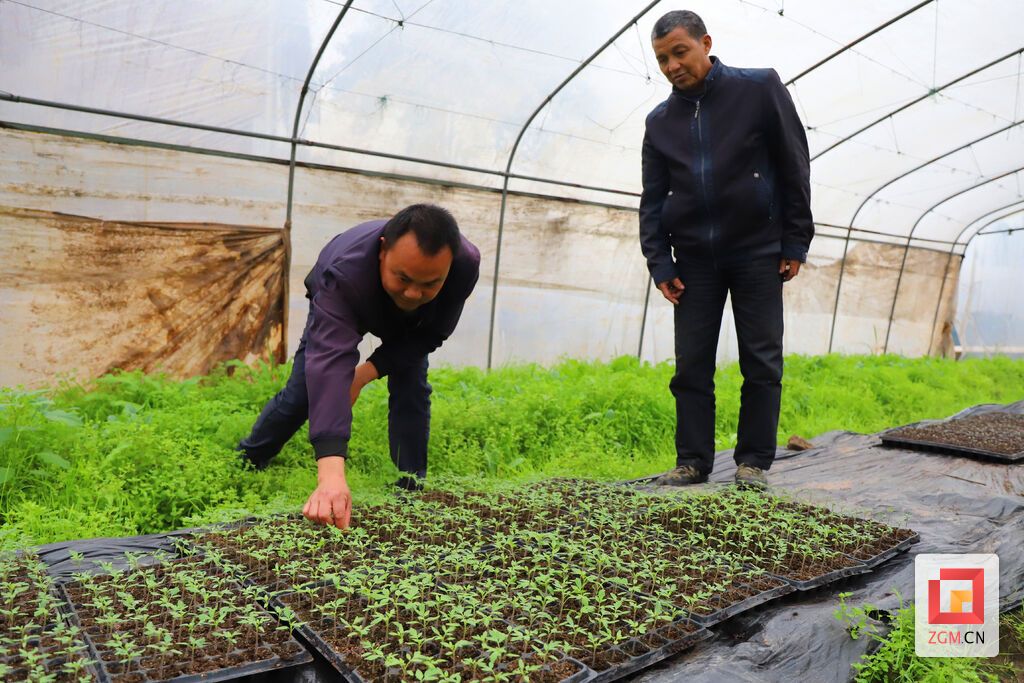 图:在花菜、西兰花喜获丰收的同时,荣县鼎新镇西堰村种植户又马不停蹄地修整温室大棚,培植早春茄苗、番茄苗,为下一季蔬果栽种做好准备。