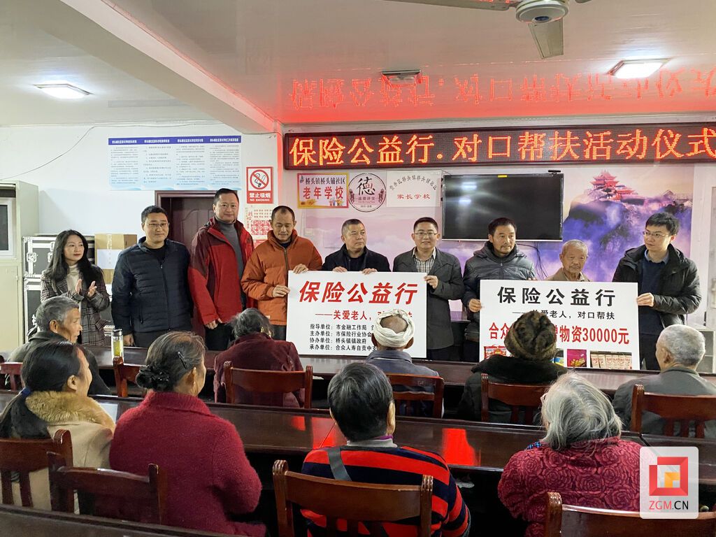 据悉,本次活动由市金融工作局、市保险行业协会、贡井区政府联合主办,合众保险公司承办。当天,来自桥头镇和荣县东兴镇的71户孤寡老人、五保户、残障特困老人等,分别收到价值500元的米、油、面等生活必需品,活动中,一行人还与老人们话家常,关心老人的身体状况。