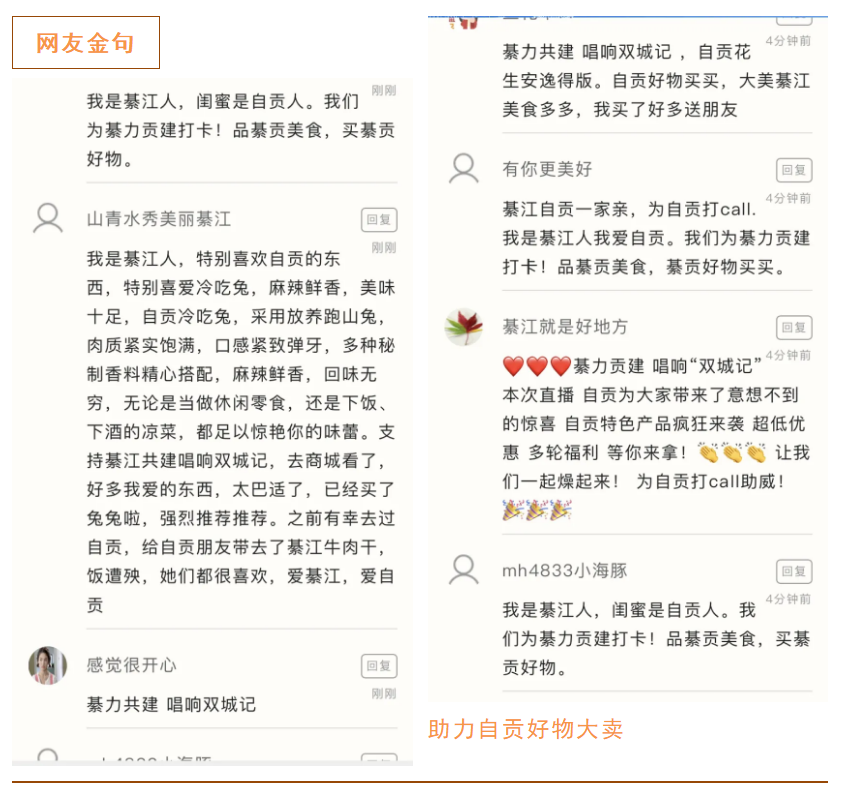 夸带货组合美,带货能力强;说周末要去自贡游玩的;说自贡好物必大卖;来,直接上图感受网友的热情!