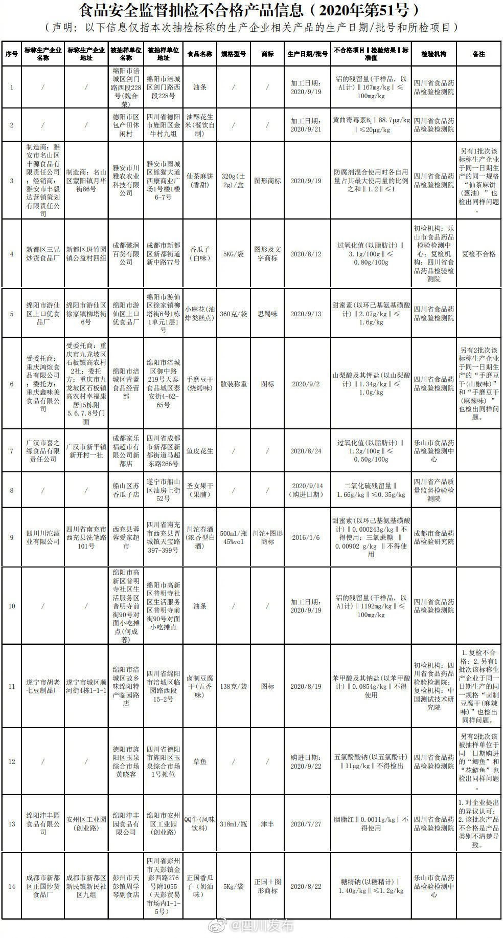 近期,省市场监督管理局组织食品安全监督抽检,抽取酒类、调味品、蔬菜制品、糕点、粮食加工品、乳制品、食用油、油脂及其制品、饮料、肉制品、糖果制品、速冻食品、茶叶及相关制品、薯类和膨化食品、饼干、食用农产品、水产制品、餐饮食品、水果制品、食品添加剂、食盐、豆制品、炒货食品及坚果制品、食糖、方便食品、保健食品等25大类食品764批次样品,检出20批次样品不合格。