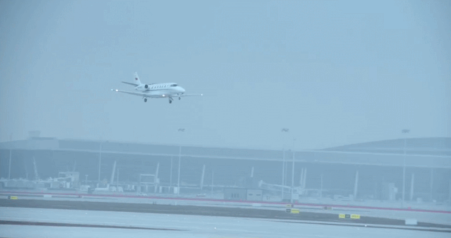 12月5日15时55分,一架注册号B-10VC的“奖状”560飞机平稳降落在成都双流国际机场,标志着成都天府国际机场空管设备、助航设施等校飞科目全部完成。