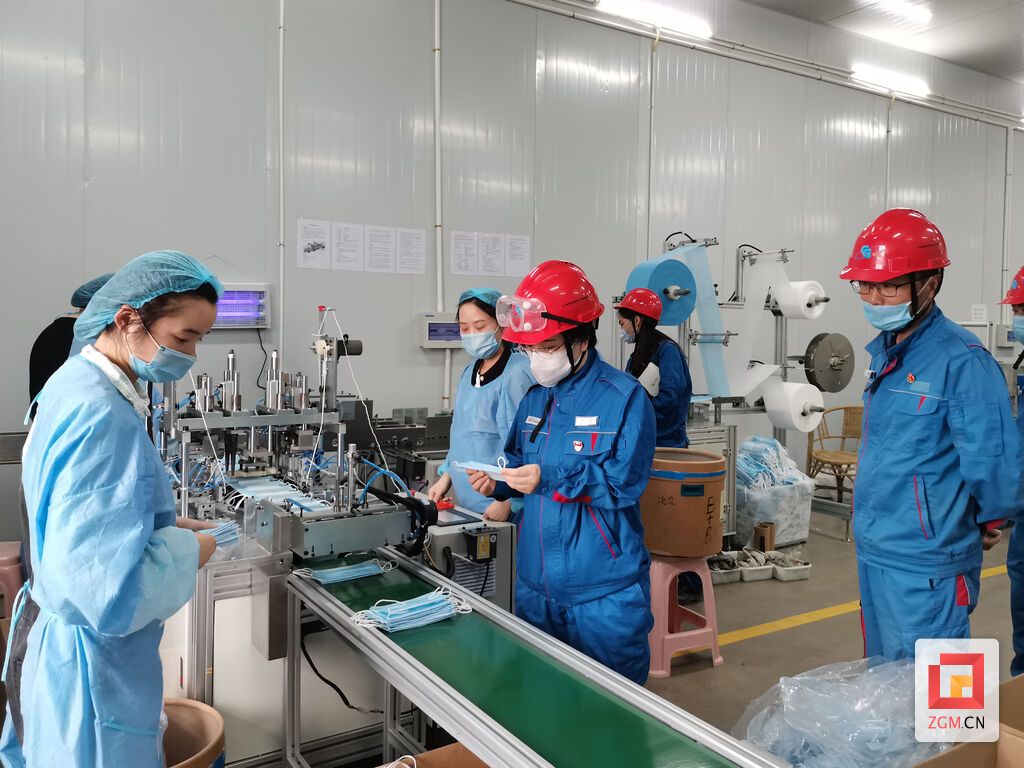 e-PTFE微滤膜口罩材料试制成功后,工程塑料厂党支部立即组建以党员为主力的口罩生产突击队,投入口罩生产制作。生产突击队成员每天坚守在生产流水线上,一干就是十四五个小时,累了就靠在椅子上歇息片刻,饿了就吃方便面、面包凑合填填肚子,每天几乎是天不见亮就赶往口罩工厂,次日凌晨才回家,满负荷的连轴转。