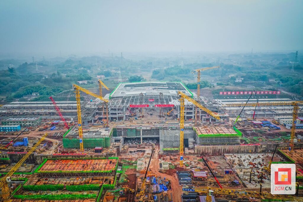 “整个东站站房主体结构提前50余天封顶,目前站房进站大厅正在进行二次结构砌砖、幕墙龙骨安装等施工。”据中铁建工集团自贡东站项目经理周佳介绍,整个项目通过倒排工期等方式,每天约有2300余名工人有序推进,确保各工期节点任务如期完成。