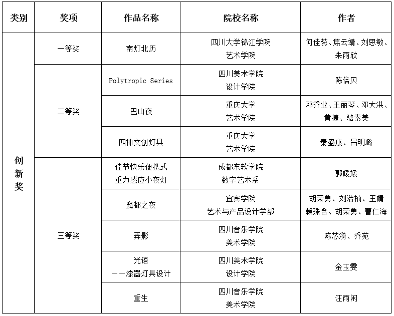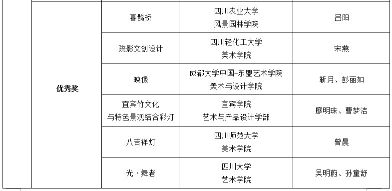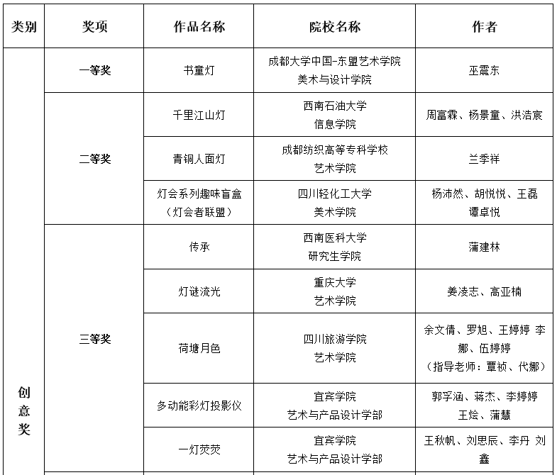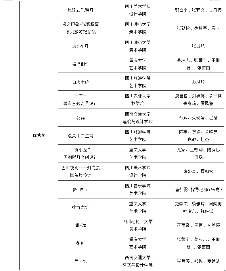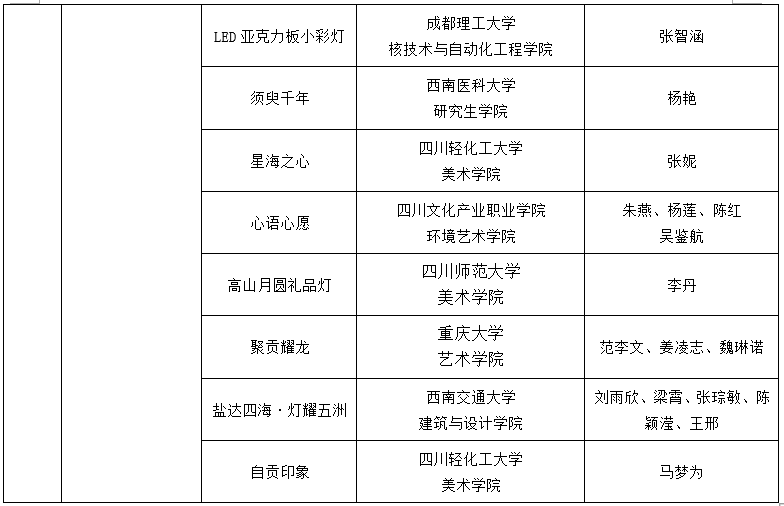 首届川渝高校青年彩灯文创设计大赛作品评选结果名单
