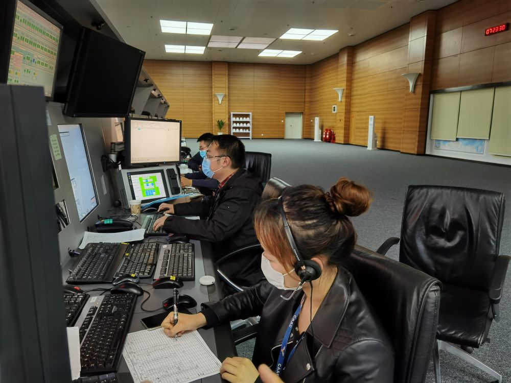 图为西南空管天府塔台管制员正指挥校飞飞行