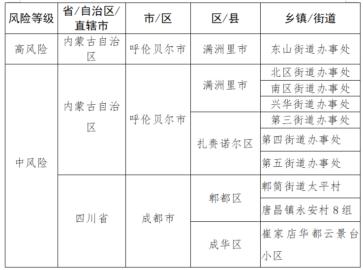 12月9日,按照市应对新型冠状病毒肺炎疫情工作领导小组办公室《关于动态做好国内重点地区到(返)市人员管理工作的通知》(自疫领办〔2020〕113号)要求,自贡市应对新型冠状病毒肺炎疫情工作领导小组疫情防控组发布国内疫情风险等级为高、中风险地区的名单。