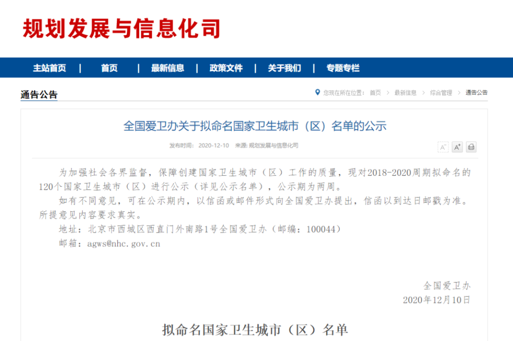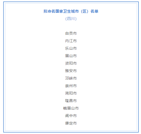 日前,国家卫健委官网公示了2018-2020周期拟命名的120个国家卫生城市(区)名单,其中,四川有13地在列。自贡市入选拟命名国家卫生城市(区)名单。