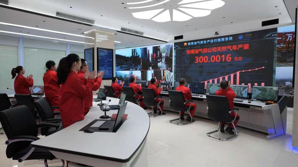 12月14日上午8点,记者在西南油气田公司天然气生产调度大厅看到,伴随着大屏幕上显示的数字不断跳动上涨,西南油气田今年的天然气总产量突破了300亿方,日产量也超过1亿方,两项数据均创造了历史最高纪录。按一个三口之家每天使用约一立方米天然气为平均值,以现有日产量计算,西南油气田公司可保证近三亿人每天的用气需求。