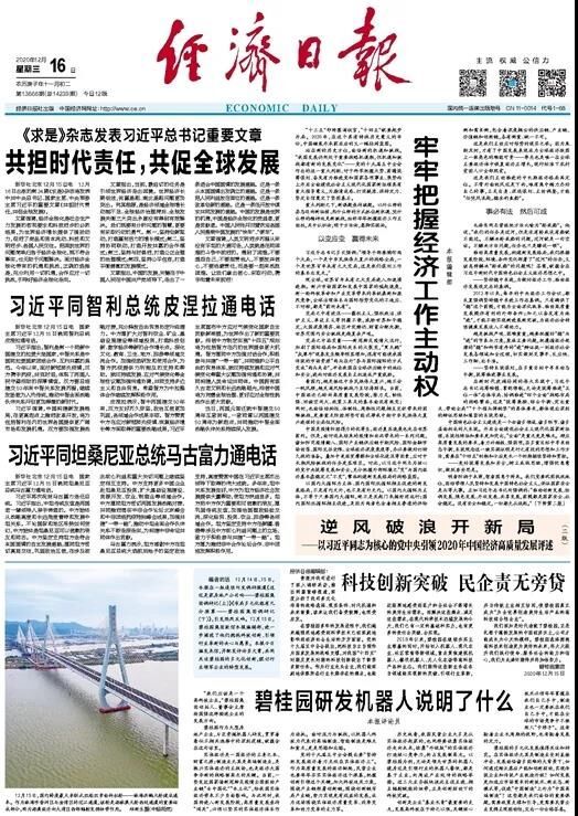 2021年,我国将进入“十四五”时期。中央经济工作会议将对我国现代化建设进程中这具有特殊重要性的一年的经济工作作出具体部署。对大局了然于胸、对大势洞幽烛微、对大事铁画银钩,在以习近平同志为核心的党中央坚强领导下,凝聚起14亿人民“人人参与、人人尽力、人人享有”的蓬勃伟力,迎难而上、因势利导,逢山开路、遇水架桥,必将谱写出中国经济高质量发展的雄浑乐章。