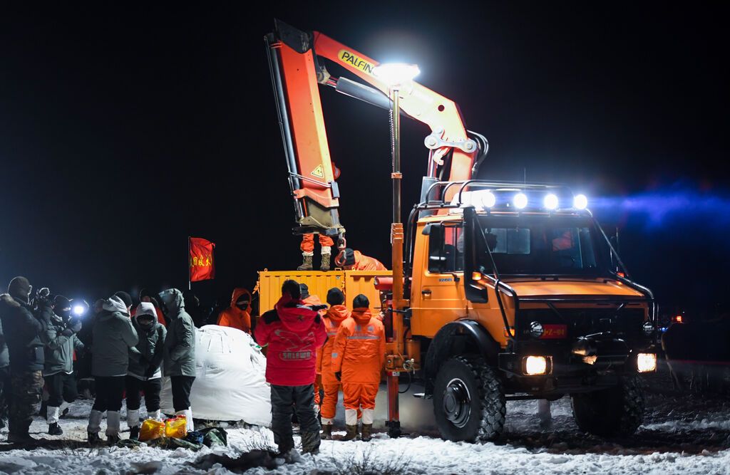 ↑12月17日拍摄的嫦娥五号返回器回收现场。