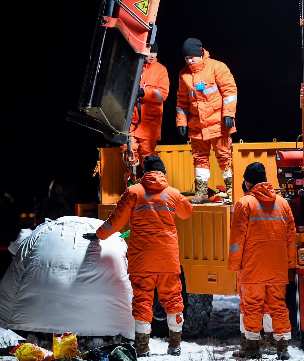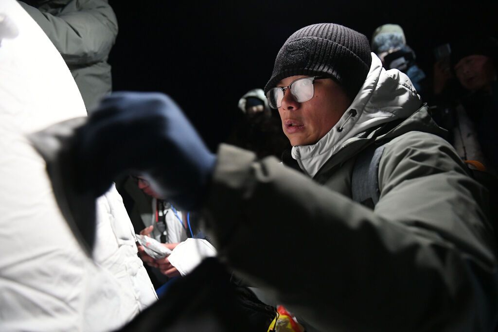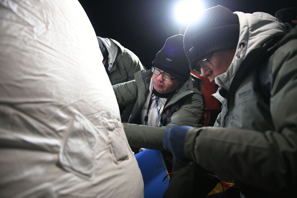 ↑12月17日,工作人员在嫦娥五号返回器着陆现场作业。