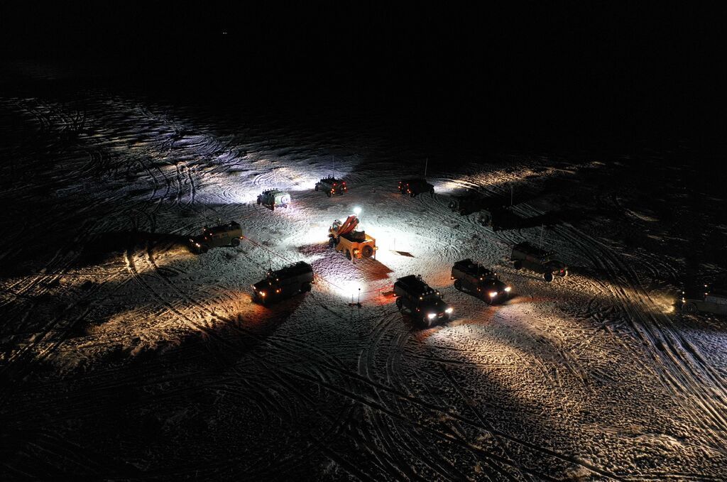 ↑12月17日拍摄的嫦娥五号返回器回收现场(无人机照片)。