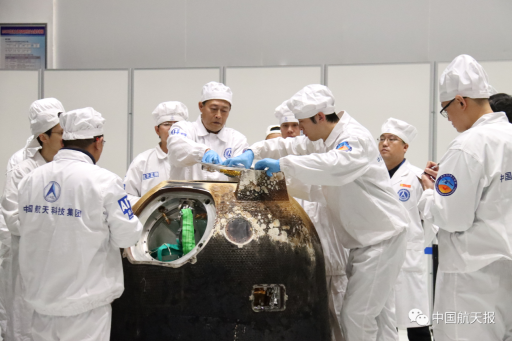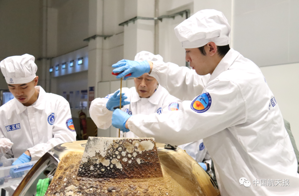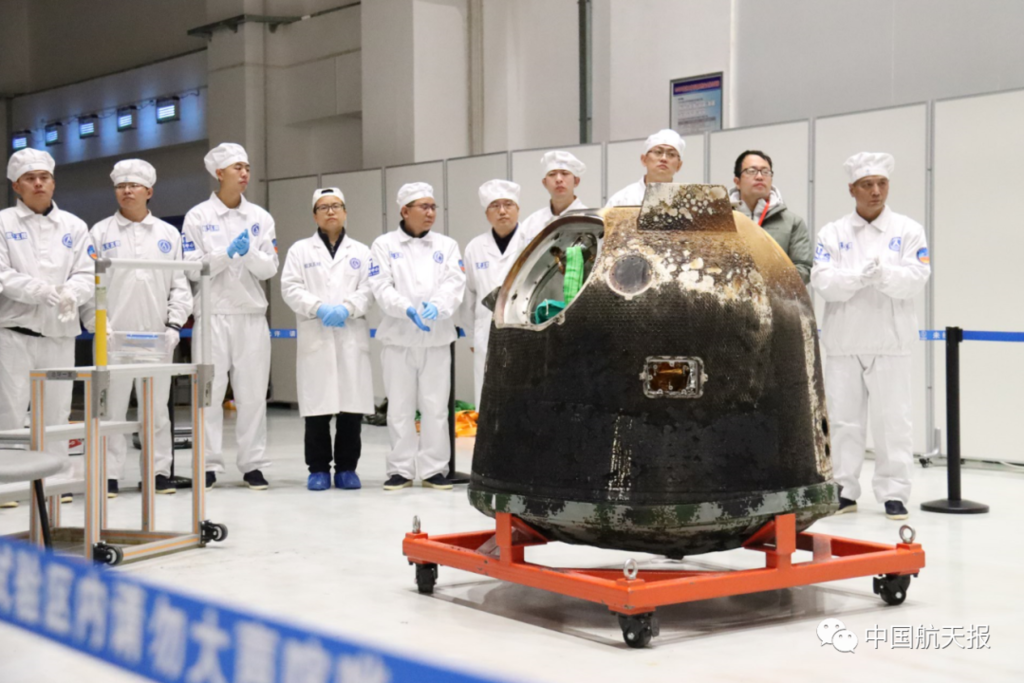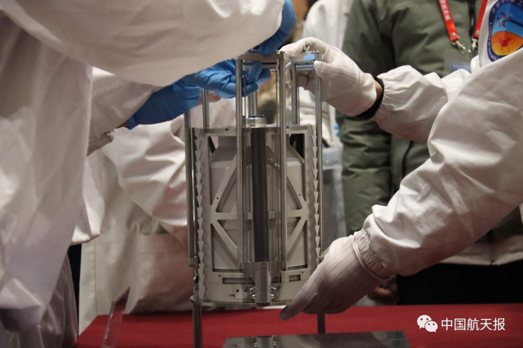 12月19日上午,重1700余克的嫦娥五号任务月球样品正式交接。国家航天局局长张克俭向中国科学院院长侯建国移交了嫦娥五号样品容器,交接了样品证书。
