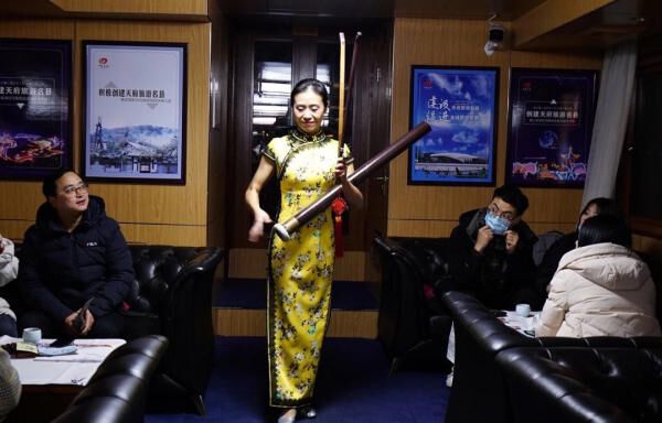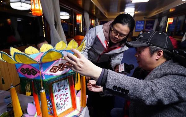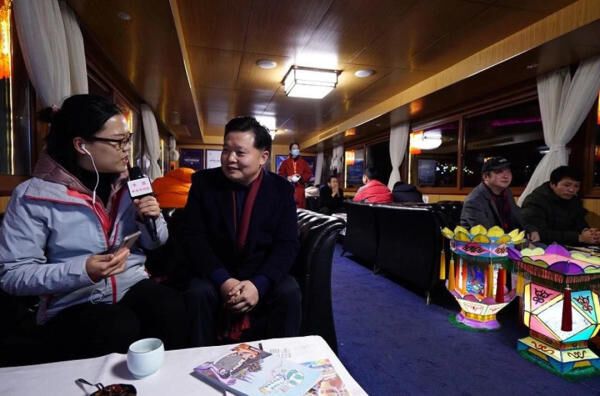 当晚,自贡文旅董事长宋青山作为特邀嘉宾,全程对自贡历史文化及沿岸灯组进行了讲解。自贡市彩灯行业商会常务副会长熊彪对自贡传统宫灯进行了介绍。夜游船上不仅有工匠现场描绘传统彩灯,还进行了富有自贡地方特色的国家级非物质文化竹琴表演。