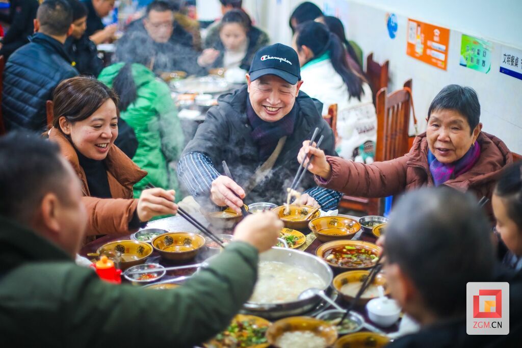 这天,自贡人对羊肉汤的热爱达到极致。大大小小的羊肉馆里热气腾腾,温暖四溢。亲朋好友围炉而坐,锅碗瓢盆,勺头碗筷的交互间,与滚烫的羊肉汤蒸腾的热气一起上扬的,还有难掩笑意的嘴角。