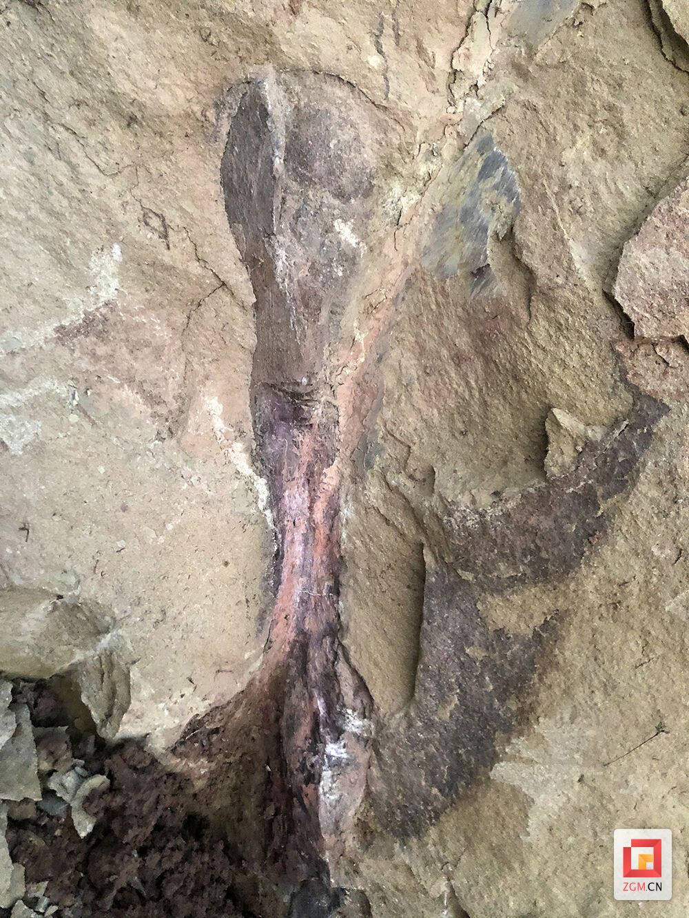 12月21日,正逢冬至,天气也晴朗起来。下午2时许,家住大山铺(自贡市恐龙博物馆附近)的李先生外出散步时,在路边发现了疑似大型蜥脚类恐龙腿骨化石。