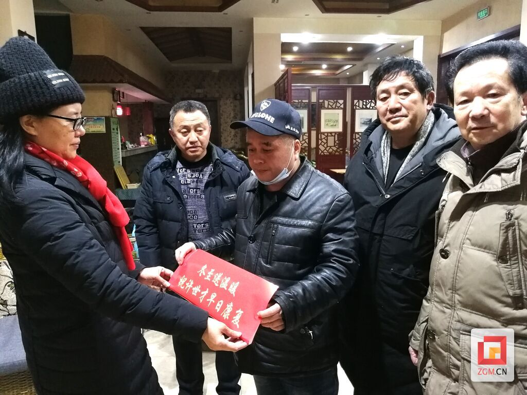 图为市棋协领导班子成员向许世才送上捐款