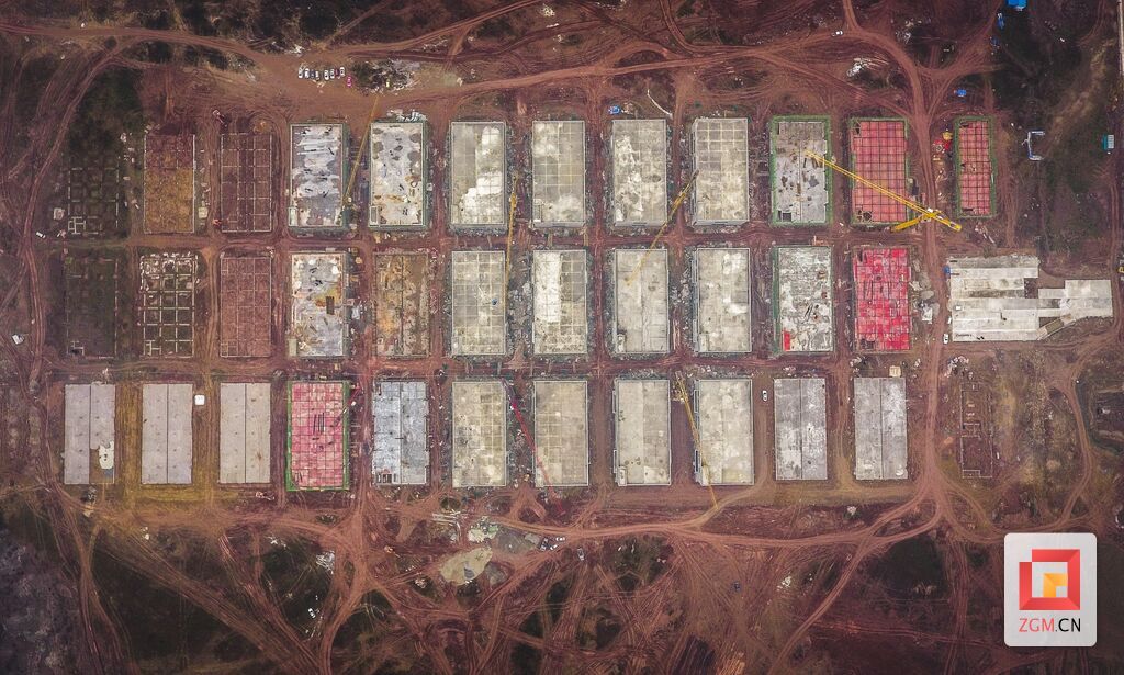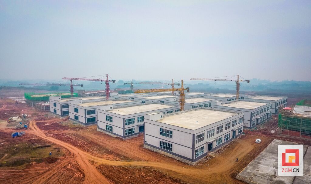 12月24日,记者在施工现场看到,各种机械引擎轰鸣,挖掘机挥舞巨臂施工,运输车辆来往穿梭,近百名施工人员紧张有序地忙碌着,一派热火朝天的建设景象。28栋标准化厂房拔地而起,从高处俯瞰,已有22栋大楼封顶,并完成16栋外墙装饰,圆满完成了全年目标建设任务。