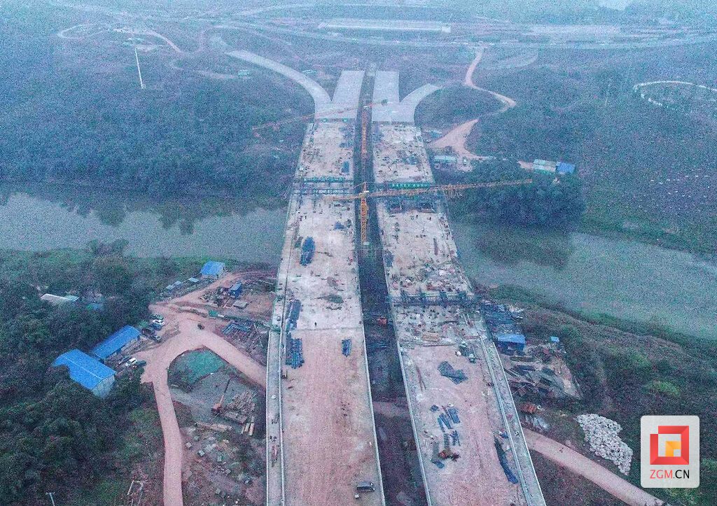 据悉,高铁连接线工程是自贡市东部新城的一条城市快速路,是支撑高铁东站对外出行的重要基础设施。西起汇川路与川云路平交口,基本呈东西走向,止于高铁东站纵一路,设计时速为80公里,标准段采用双向八车道。其中釜溪河二号桥做为工程的重要项目之一,起于东环线东侧,上跨釜溪河,东至王家坝村,桥梁全长411. 36米,主桥采用大跨径变截面连续箱梁跨越釜溪河,引桥采用等截面预应力现浇箱梁。