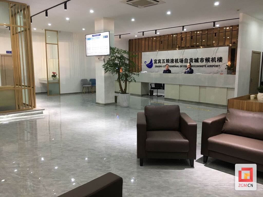 宜宾五粮液机场自贡城市候机楼位于自贡南湖体育中心,面积210平米。市民可以在此直接购买机票,完成在宜宾五粮液机场登机前的值机业务和行李托运。同时,候机楼配备了7座、19座、31座送机直通车,市民可采取网上预约的方式,享受有品质的上门接送机服务,实现从家门口到登机口的无缝对接一站式服务。候机楼也向团队提供个性化服务,保证旅客40分钟安全、舒适、快捷到达机场。