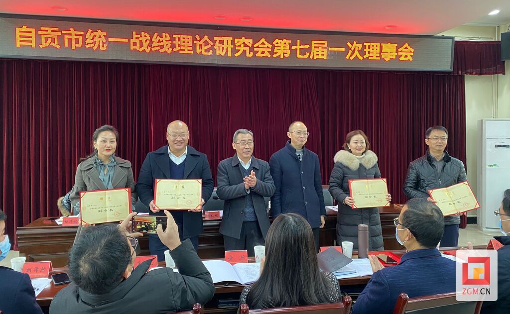 12月31日,自贡市统一战线理论研究会第七届一次理事会召开,会议审议通过了第六届理事会工作报告,选举产生了自贡市统一战线理论研究会第七届理事会会长、副会长、秘书长及常务理事,并颁发了聘书。
