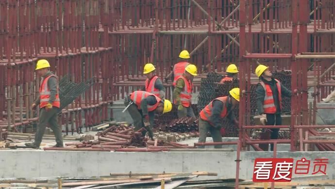 一月一日早上的室外温度只有5°C,在自贡东站施工现场,2000多名施工人员在冬日里挥洒汗水,在奉献中体验幸福。