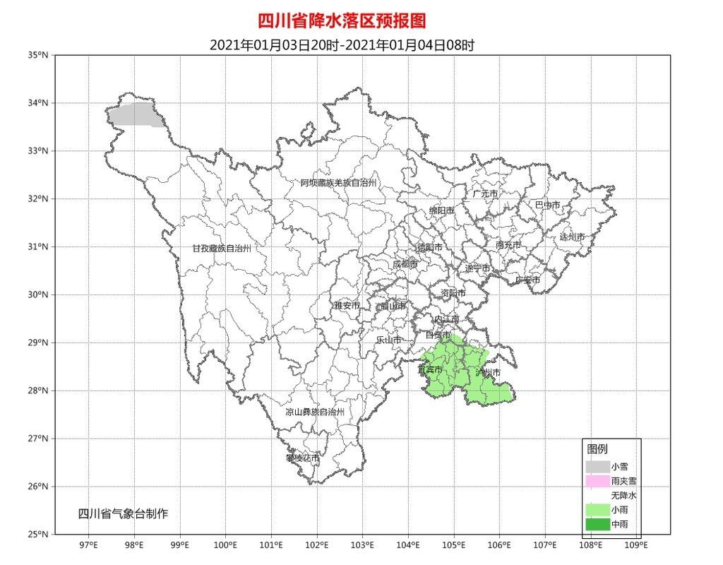 预计6~8日,受北方冷空气影响,盆地将有一次较明显的降温和雨雪天气过程,日平均气温将累计下降3~5℃,盆地大部地方有小雨夹雪,盆周山区有小雪,盆地内最低气温将下降至零下1℃~1℃,最高气温将下降至2~4℃;川西高原北部和凉山州东北部有阵雪(雨),局部有中到大雪。