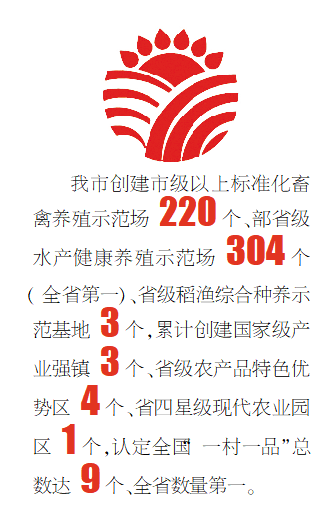 加速转型中,我市八大产业跻身全省现代农业“10+3”产业体系。拥有全国领先、全省最优的曾祖代种猪场;拥有150万亩特色粮油产业基地,“中稻+再生稻”单产西南第一……与此配套,建成田网、路网、渠网等基础设施配套完善的高标准农田62.5万亩,农作物耕种收综合机械化水平达61%。