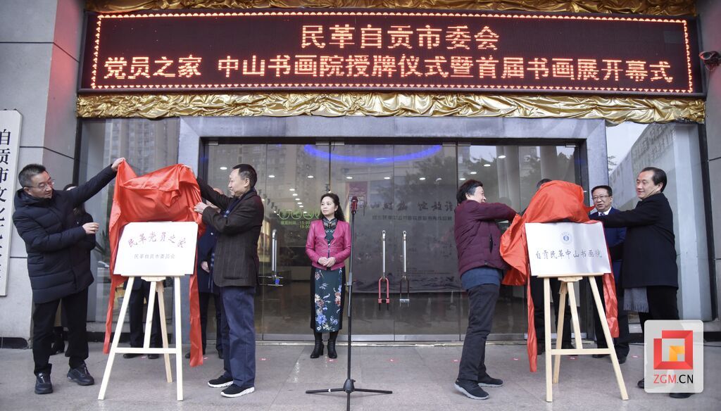 仪式上,郑学炳、中共自贡市委统战部副部长刘义,自贡市政协副主席肖光俊、民革四川省中山画院院长姚叶红分别为自贡民革党员之家、中山书画院授牌。