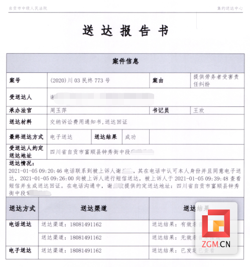 1月5日,随着书记员打印出完整的“送达报告书”“电话送达记录”“电子送达记录”“送达回证”,自贡中院首例智能化集约电子送达成功。