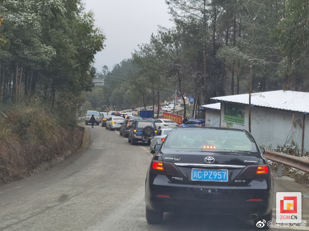 7日,自贡荣县高石梯森林公园迎来2021年第一场雪。8日上午,市民纷纷前往高石梯看雪。据@荣县公安、@荣县交警提示:目前,井荣路高石梯路段车流量较大,已实行交通管制,临近周末假期,请广大市民请勿前往。