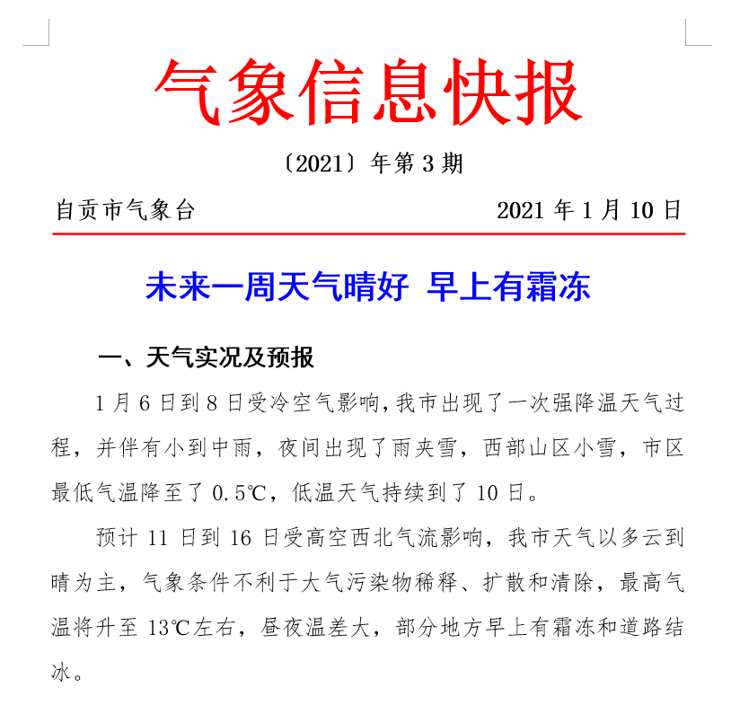 记者从市气象台获悉,预计11日到16日受高空西北气流影响,我市天气以多云到晴为主,最高气温将升至13℃左右,昼夜温差大,部分地方早上有霜冻和道路结冰。