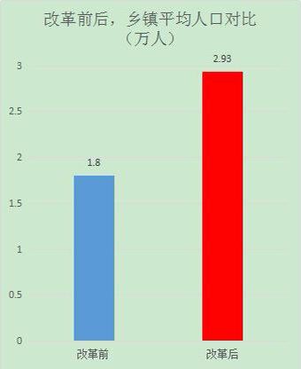 本轮乡镇行政区划调整改革共减少乡级政区1509个,减幅32.73%,改革后全省辖3101个乡级政区,其中,有街道459个、镇2016个、乡626个。目前,全省镇和街道数量达到乡级政区总数的80%,比改革前提高了24个百分点。乡级政区平均户籍人口由1.8万人增至2.93万人,平均幅员面积由106平方公里增至156.7平方公里。