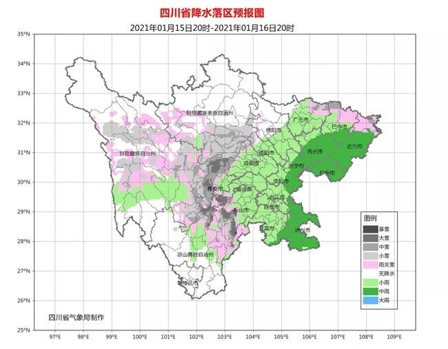 四川将在15日晚迎来降温。四川省气象台预计,15日夜间到17日,受北方冷空气和高原低槽共同影响,四川省将有一次较明显的降温降水天气过程,盆地日平均气温累计下降3~5℃,大部地方有小雨,东部、南部的局部地方有中雨,山区有雨夹雪或小雪,冷空气影响时伴有3~5级偏北风,山口河谷地区可达6级或以上;川西高原和攀西地区部分地方有阵雪(雨),局部地方有中到大雪。