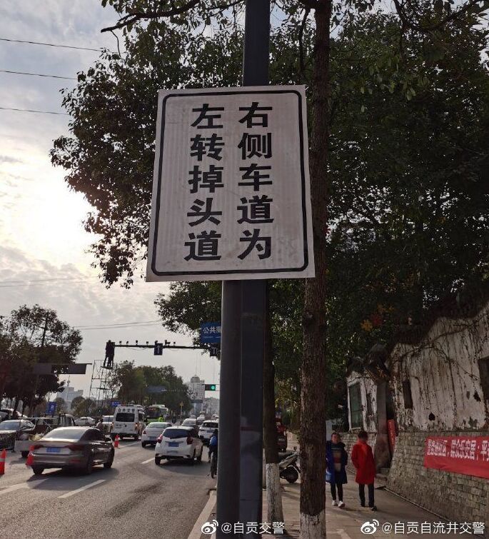 目前,自贡市自流井辖区二中路口施工改造已结束,入城方向掉头和左转车道已合并为最右侧第一根车道同时通行,左转车道已更改为直行车道。请广大驾驶人自觉遵守交通法规,服从现场交警指挥,按照车道指示标志和信号灯通行。