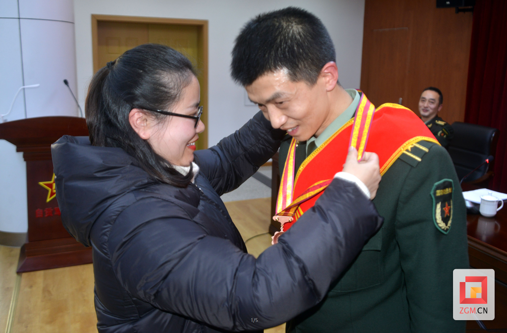 “这枚军功章里有我的一半,更有我爱人的一半。如果没有她多年如一日在背后的默默付出和鼎力支持,我也不能全身心地扎根火热军营、献身国防事业。”1月14日,在自贡军分区表彰大会上,沿滩区人武部李小华的奖章由妻子郑佐丽亲手颁发。随即,他将妻子刚刚为他佩戴的三等功奖章,挂到了妻子胸前。现场,军地双方主要负责同志,军分区官兵、文职人员代表以及部分官兵家属共同见证了这一光荣而感人的时刻。