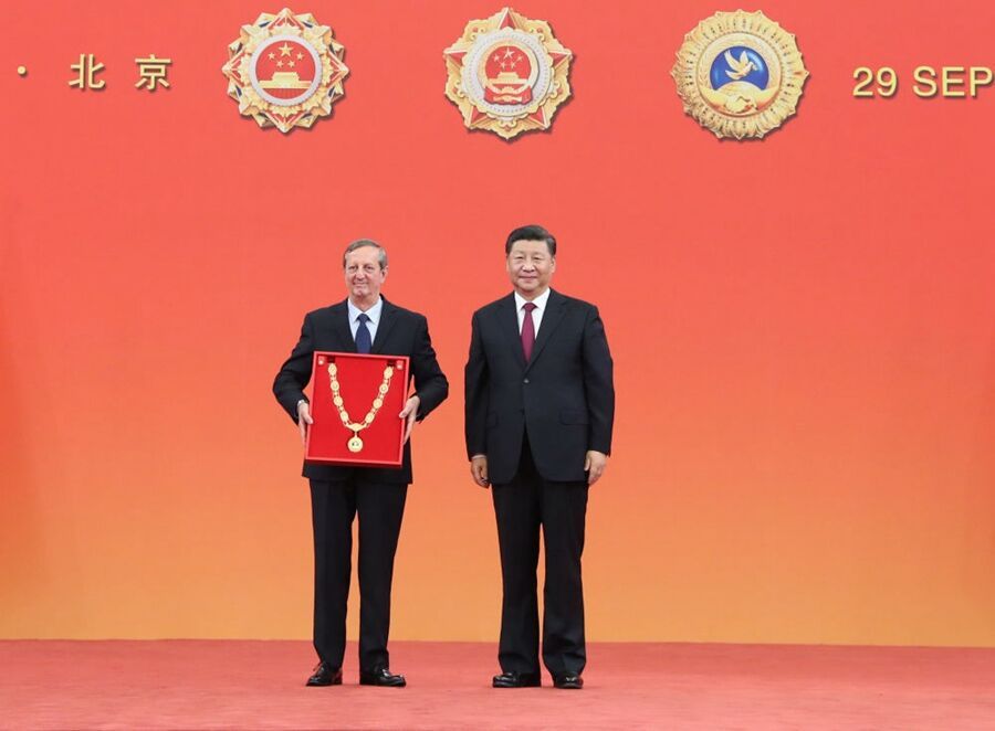 (图为2019年9月29日,习近平向古共中央第一书记劳尔·卡斯特罗颁授“友谊勋章”,时任古巴驻华大使拉米雷斯代领。新华社记者 王晔 摄)
