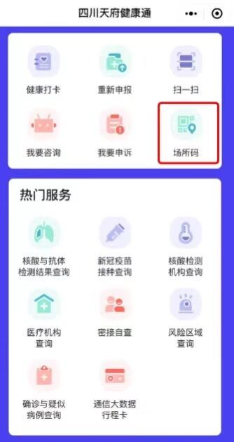 “四川天府健康通”包括居民使用的健康码和医疗机构、校园、农贸市场等重点场所管理人员申领和使用的场所码。