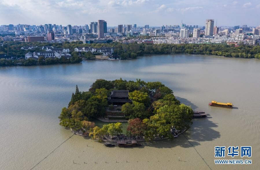 嘉兴南湖湖心岛(2020年10月27日摄,无人机照片)。新华社记者 徐昱 摄