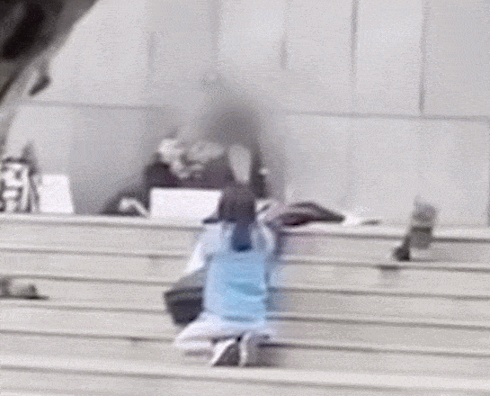 狙击手开枪后,身穿蓝色上衣的女记者撤离。