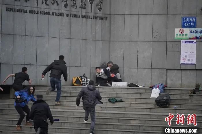 据通报,22日17时许,一名男子在昆明市五华区华山街道辖区东风西路云南师范大学附属实验中学门口持刀致伤7人后,劫持1名人质。